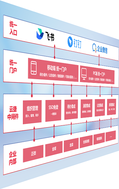 对协作平台提供支持服务,,,支持企业应用与协作平台对接,,,,包含组织同步、、消息集成、、待办集成等。。。。支持目前主流的协作平台:钉钉、、企微和飞书。。。